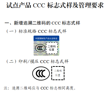 自2026年3月起,试点产品规模内新取得CCC认证证书的产品型号,应标示CCC追溯二维码后,方可出厂、出售、进口或许在其他经营活动中运用。